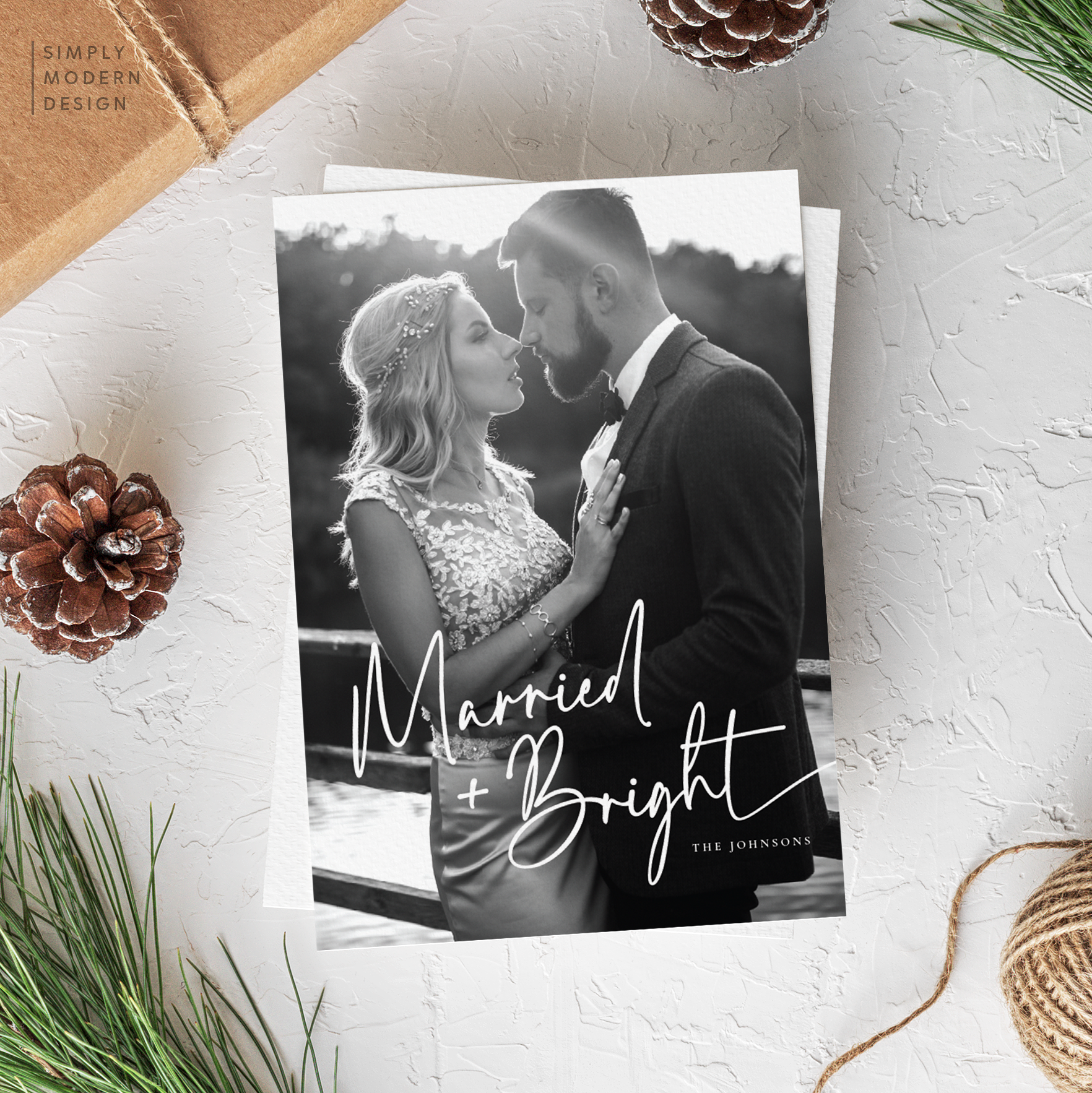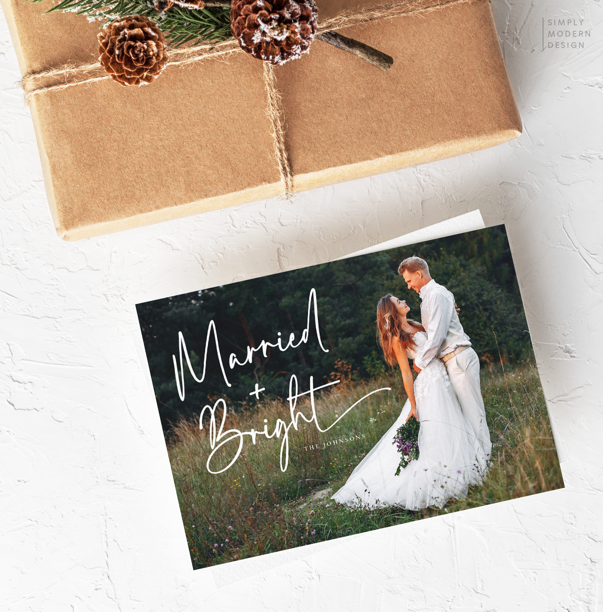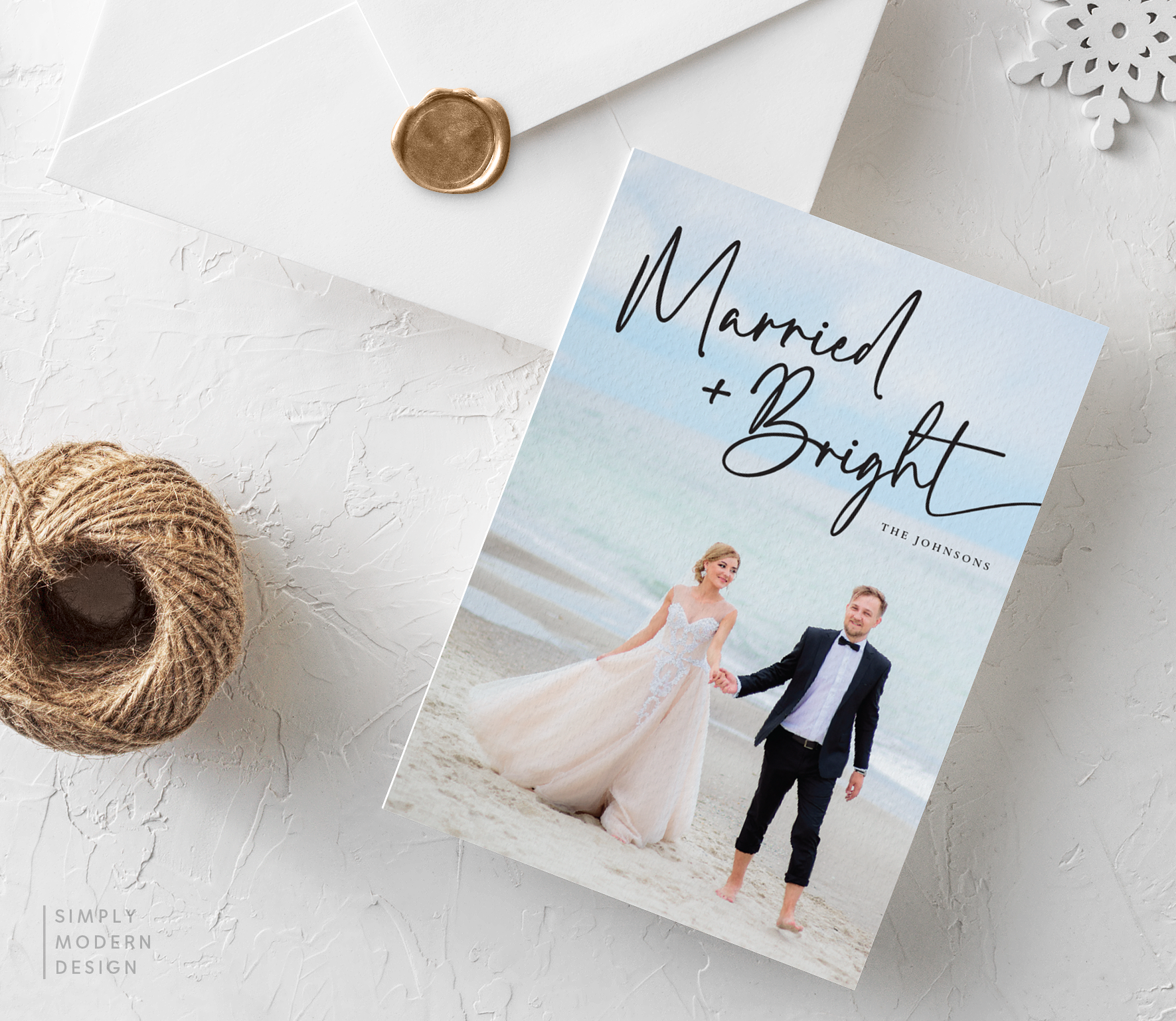 Editable template featuring our married + bright full photo holiday wedding card or thank you. Access your template after your payment is complete using the email link sent from Jettemplate - edit and print or send today!